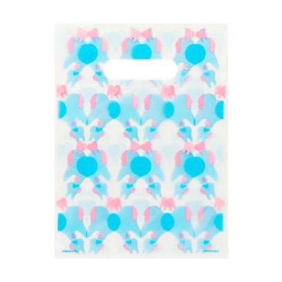 お持ち帰りも楽しく! のイラスト入りバッグ。