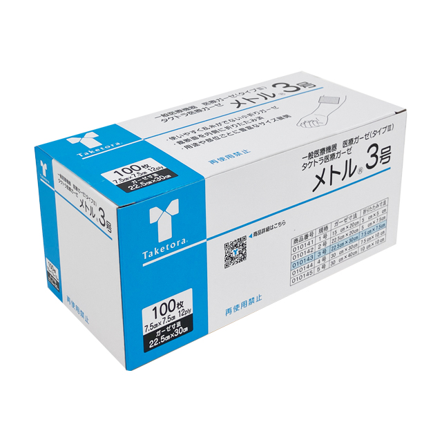 ●商品コード: 1788472●入数: 100枚●タイプ: 3号●サイズ: 75×75mm●販売名: タケトラ医療ガーゼ●薬事表示番号: 医療機器届出番号14B3X10016000004
