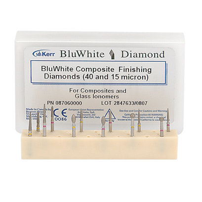 コンポジットおよびグラスアイオノマーのカンターリングとポリッシング用にデザインされたダイヤモンドバーのセット。