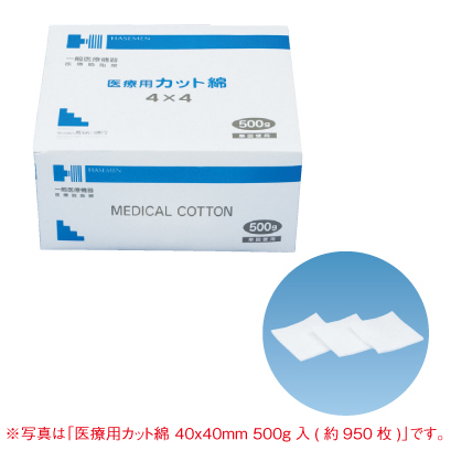 ●商品コード: 4141020●入数: 約950枚●サイズ: 40×40mm●内容量: 500g●販売名: 医療用カット綿●薬事表示番号: 医療機器届出番号23B3X00017000010
