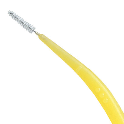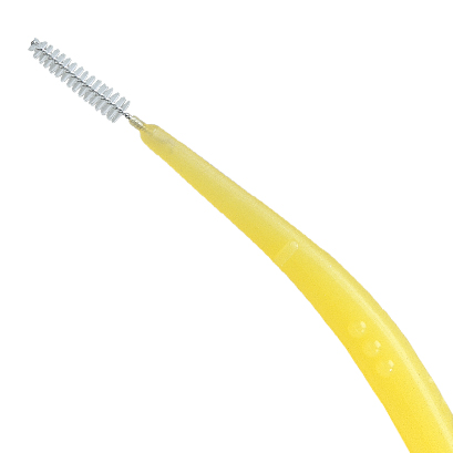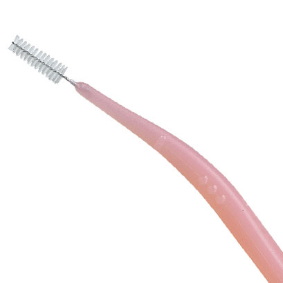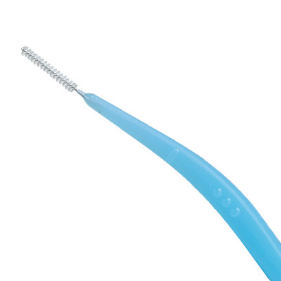臼歯部挿入時も頬粘膜が邪魔にならない歯間ブラシ。