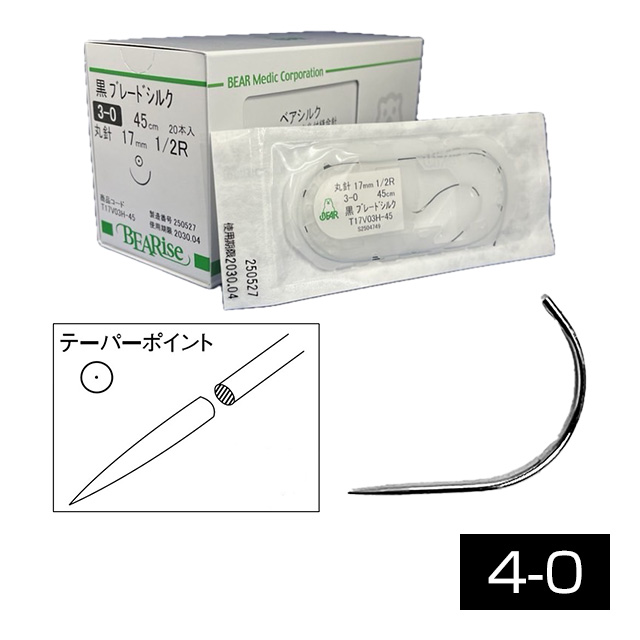 ●商品コード: 3940610●入数: 20本●メーカー型番: T19V04GCC-45●先端形状: テーパーポイント●針長: 19mm●湾曲: 逆クロソイド●USP.No: 4-0●糸長: 45cm●材質: 絹●糸色: 黒●販売名: ブレードシルク糸付縫合針●薬事表示番号: 医療機器承認番号23000BZX00205000