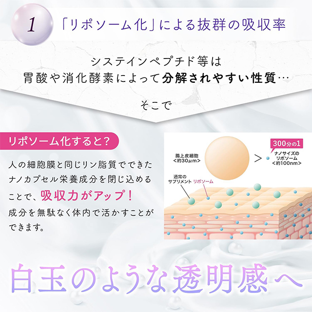 リポソーム白玉成分配合のサプリメント。