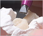 使用した研磨剤を再利用できる、レンフェルト社製の循環式サンドブラスター。
