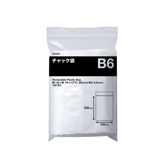 ●商品コード: 1353080●入数: 100枚●サイズ: B6(140×200mm)●入るものの大きさ目安: マスク