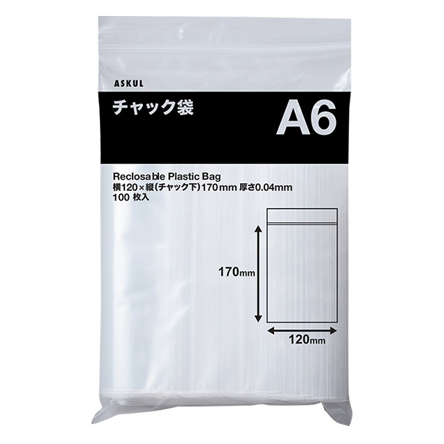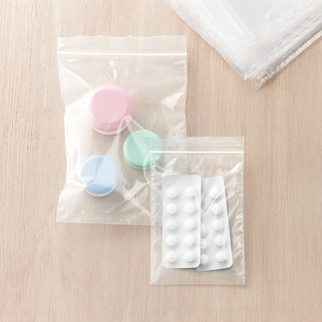 スタンダードな0.04mm厚。透明度の高いオリジナルのチャック袋です。