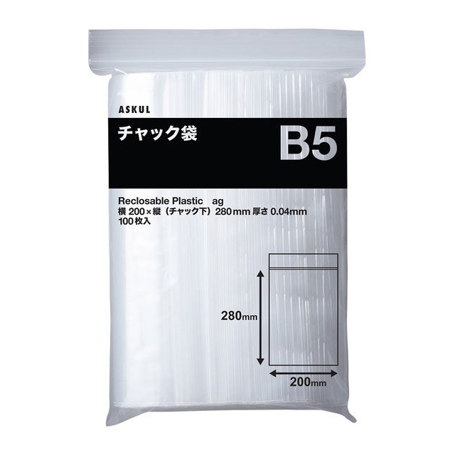 ●商品コード: 1355377●入数: 100枚●サイズ: B5(200×280mm)●入るものの大きさ目安: B5用紙