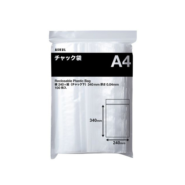 ●商品コード: 1359278●入数: 100枚●サイズ: A4(240×340mm)●入るものの大きさ目安: A4用紙