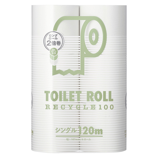 省スペースで交換の手間を省く2倍巻きタイプのシングルトイレットペーパー。