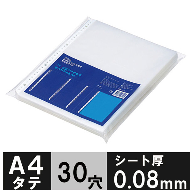 アスクル 30穴リング式ファイル用ポケット 0.06mm