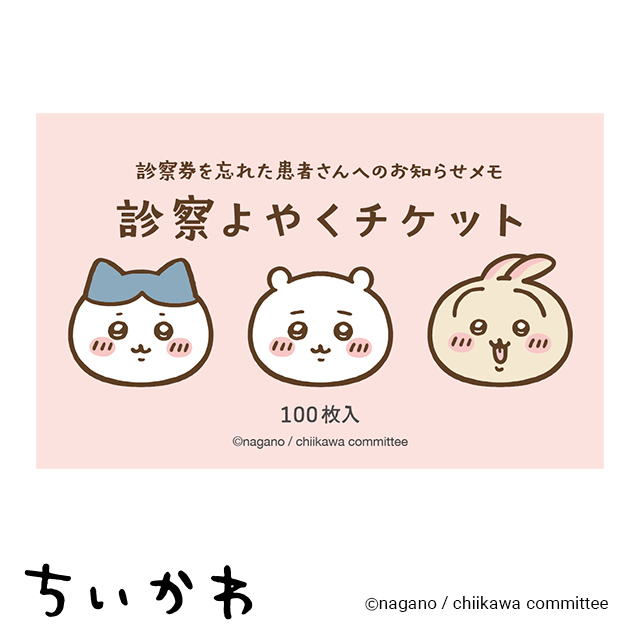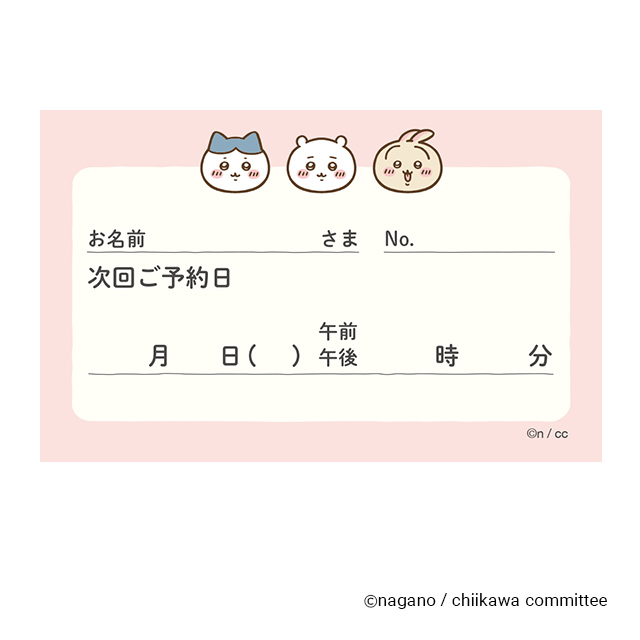 ちいかわやハチワレ、うさぎがデザインされた患者さんへの次回予約日お知らせメモ