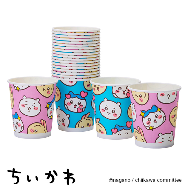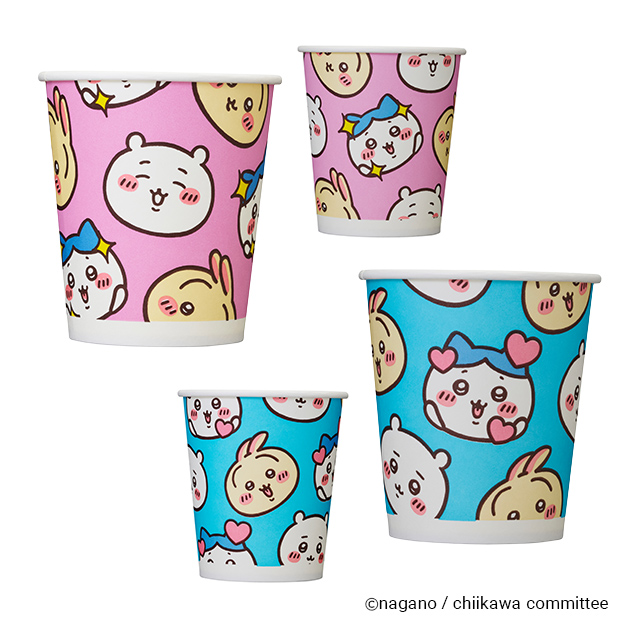 ちいかわやハチワレ、うさぎがデザインされたキュートな2柄アソート紙コップ。