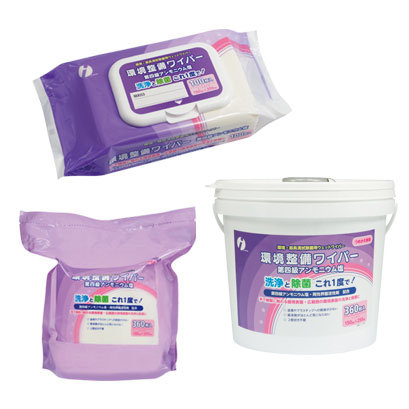 第四級アンモニウム塩配合の洗浄・除菌タオル。