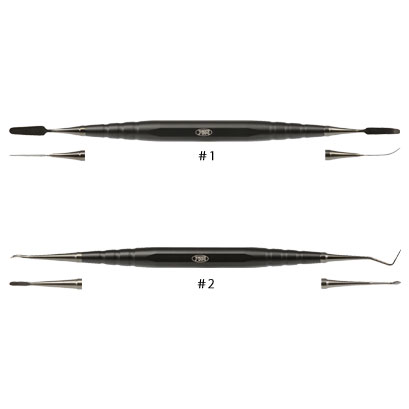 先端部にDLC(Diamond Like Carbon)コーティングを採用したレジン形成器です。高硬度、耐摩耗性、平滑性の特性により操作性と機能性に優れています。黒いハンドルは光を吸収し、反射光によるレジン色調への影響が軽減されます。