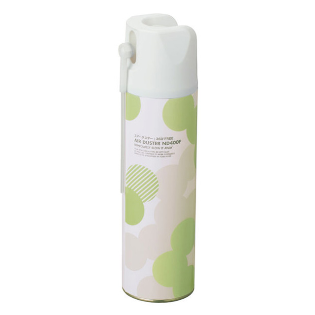 360度回転式ノズル付キャップを装着した環境に優しい「ノンフロン」タイプのエアダスター。