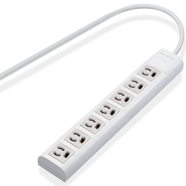 強力マグネット付たっぷり7個口抜け止めコンセント。 3P-2P変換アダプタ付。