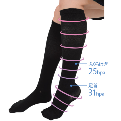 凹凸編みでキュッと着圧!お得な10足組の黒色着圧ソックス。