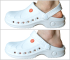 サイドのパンチで通気性抜群! 制電機能もついたクロッグサンダル。