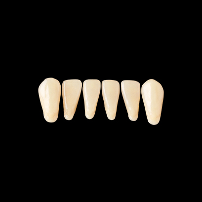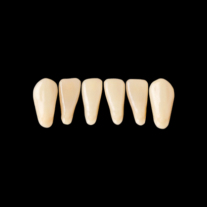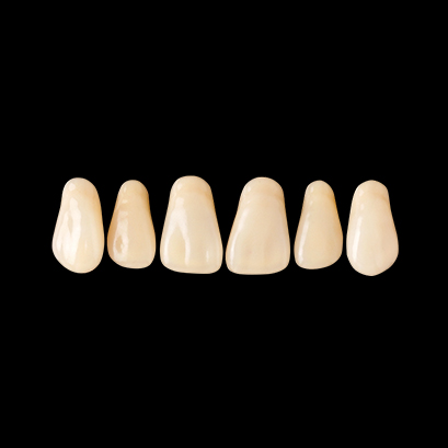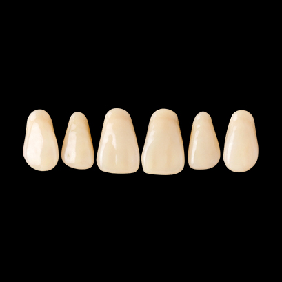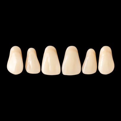 某有名製品に形態が近く違和感なく使えました。人工歯はワックスで固定されていないので、拭き取りの手間が省けて排列しやすかった。咬頭の丸みがきつくないので、咬み合わせも問題ないと思います。前歯・臼歯ともに特に問題はなく、保険義歯での使用では充分かと思います。隣接面は層の境目が若干気になりました。