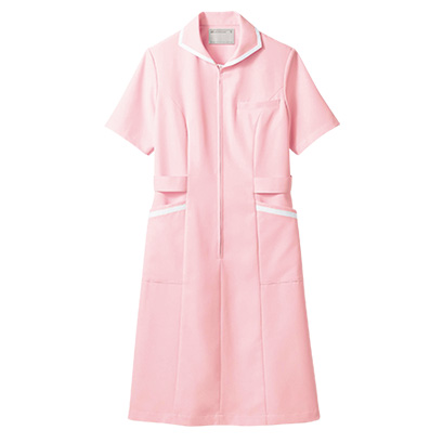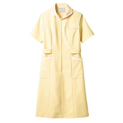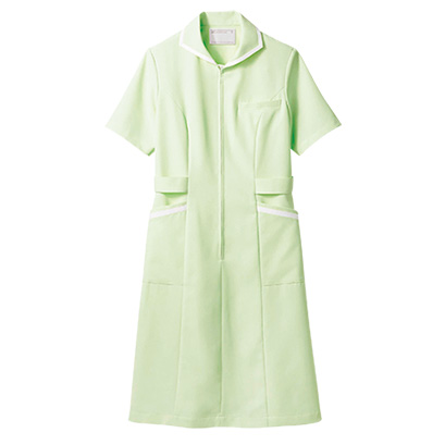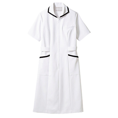 テープ使いでメリハリデザインの白衣ワンピースです。