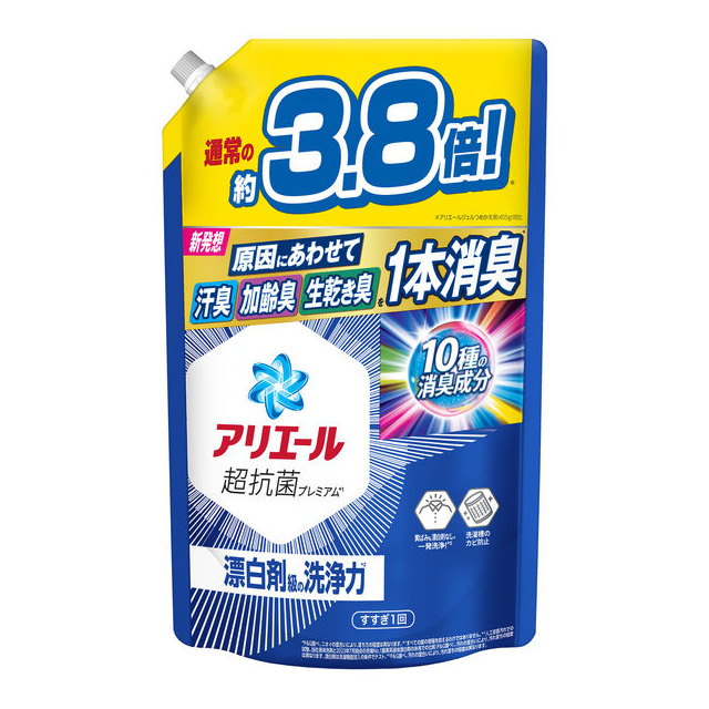 10種類の消臭成分が配合されたアリエールジェル洗濯洗剤。