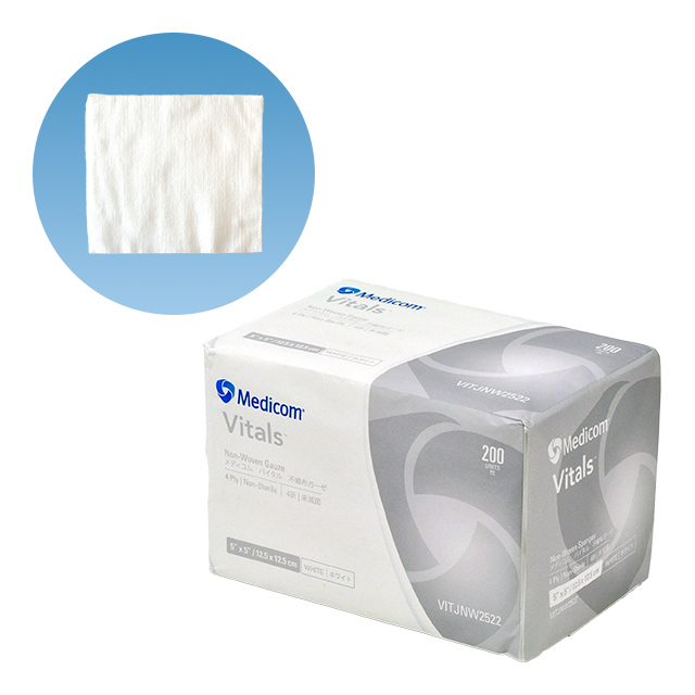●商品コード: 3245968●入数: 200枚●サイズ: 250×250mm●販売名: メディコム バイタル 不織布ガーゼ●薬事表示番号: 医療機器届出番号28B3X00001000033