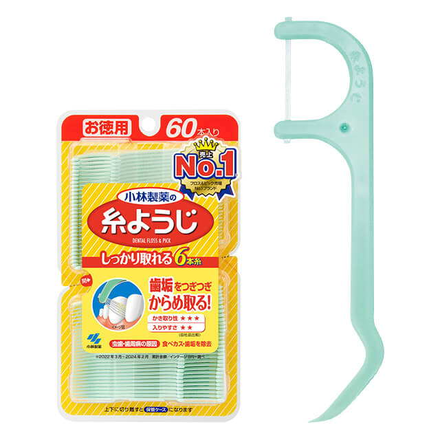 帯状に並んだ6本糸でしつこい歯垢をごっそり取るハンドル付フロス。