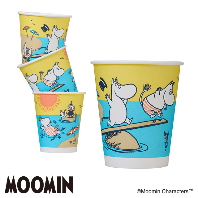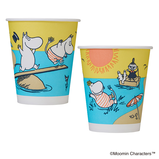 夏を楽しむムーミンと仲間たちがデザインされた紙コップ。