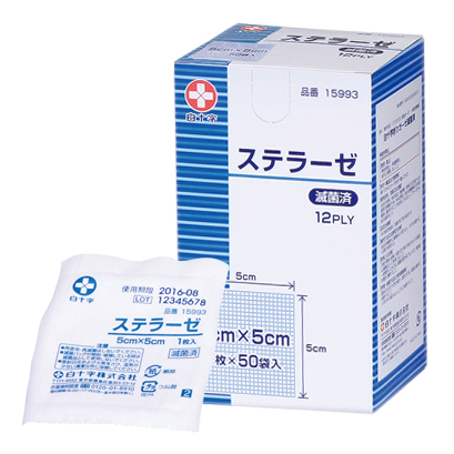 ●商品コード: 6695598●入数: 50枚(1枚パック×50)●サイズ: 75×75mm●販売名: 白十字折りガーゼ滅菌済●薬事表示番号: 医療機器届出番号13B2X00023000011