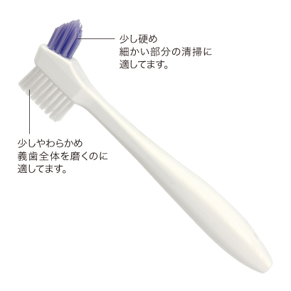 手にしっくり馴染む丸みのあるハンドルの義歯ブラシ。
