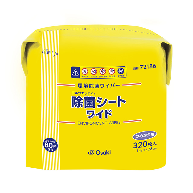 80%アルコール含浸の大判除菌シート。