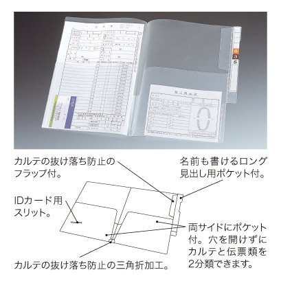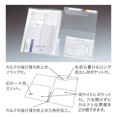 機能性の高いロングタイプ見出し式カルテフォルダー。