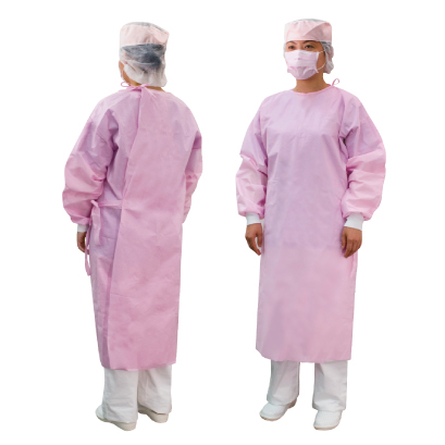 かわいらしいピンクのサージカルガウンセット。