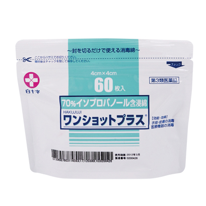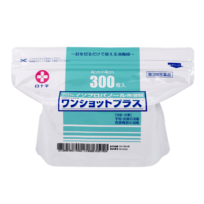 カット綿に70%イソプロパノールを含浸したソフト容器入り消毒綿。