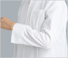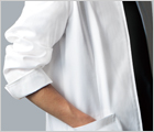 忙しく立ち動くドクターのためにデザインされた、前を閉めずに羽織っても様になる診察衣です。上下に開閉できるダブルジップ仕様で、立ち座りの多い診療現場でもきちんとした印象で着用できます。軽いストレッチ性のある素材に特別な袖の立体パターンを採用し、ファスナーを閉めたままでも腕の動きを妨げず快適な着心地です。