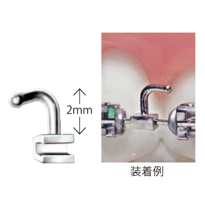 ●商品コード: 5920812●入数: 10個●タイプ: レクトアーチフック(左)●サイズ(インチ): .021×.025●長さ: 2mm●販売名: フック●薬事表示番号: 医療機器認証番号16200BZY00907000