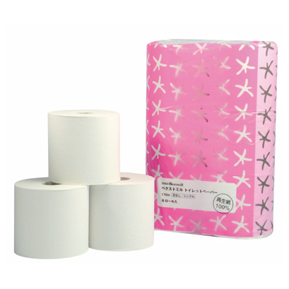 ・ リサイクルパルプ100%の商品です。(トイレ紙は再利用ができないため、他のどんな紙よりも再生紙を優先すべき、とも言われています)