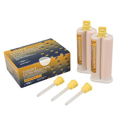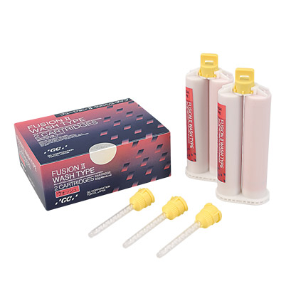 ●商品コード: 8207555●入数: 1ケース●タイプ: ウォッシュ●セット内容: カートリッジ62g(48ml)×2、ミキシングチップⅡSS×8●販売名: ジーシー フュージョンⅡ ウォッシュタイプ●薬事表示番号: 医療機器承認番号220AABZX00013000