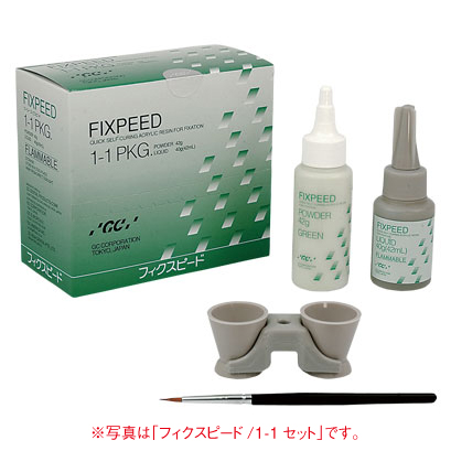 ●商品コード: 8204277●入数: 1セット●種類: 1-1セット●セット内容: 粉末42g・液40g・カップホルダー・筆(No.10)×各1、ラバーカップ×2●販売名: ジーシー フィクスピード●薬事表示番号: 医療機器認証番号221AABZX00173000