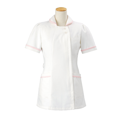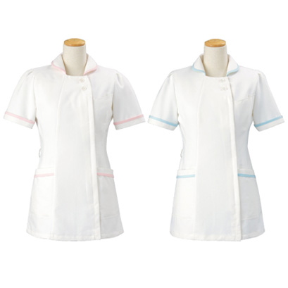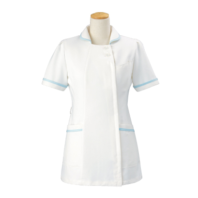 ペールトーンのトリミングがさわやかな印象のナースウェア。