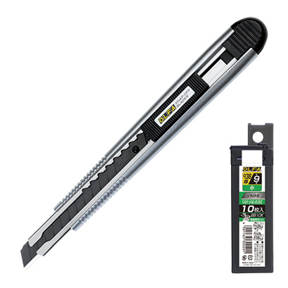 落とした場合は刃がホルダーに戻りやすい安心設計のカッターです。