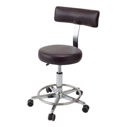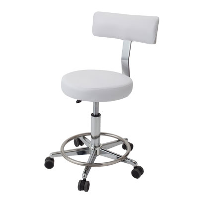 足置き+背もたれ付きのガス圧昇降式スツール。 背もたれの角度が変更となりました。詳細は下部画像の2枚目をご確認ください。