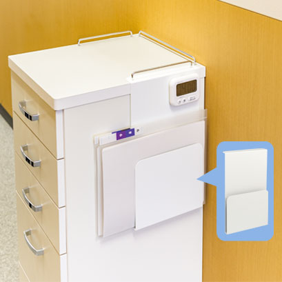 「クリニックキャビネット」の使い勝手をさらにアップさせる 専用カルテホルダーラック。