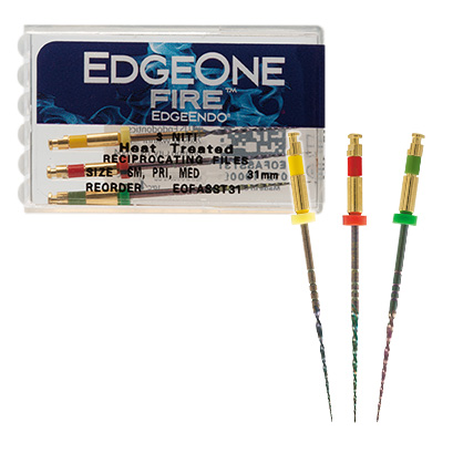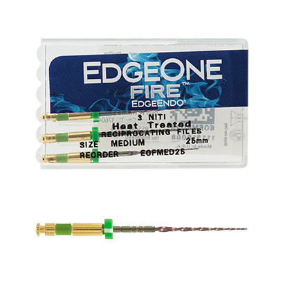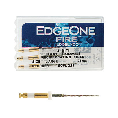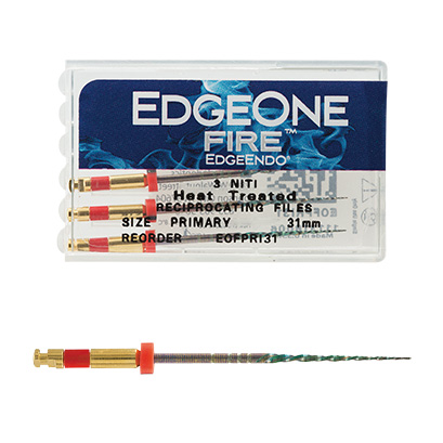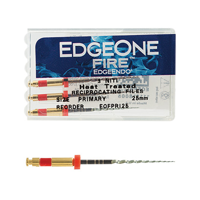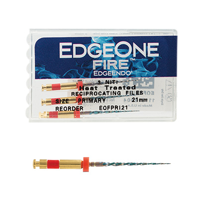 EdgeOne FireTMは、レシプロ対応のエンドモーターで使用されるよう設計された、湾曲根管形成を得意とするレシプロケーティングNi-Tiファイルです。正回転で使用するロータリーファイルと比べるとファイルの構成がシンプルであることが特長で、グライドパス形成後には、プライマリーが第1選択となり、基本的にはその1本で形成を終了することが可能です。
