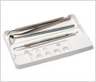 DECO TRAY miniは、コンパクトでありながら強度があり、基本セット(探針、エキスカベーター、充填器、ミラー、ピンセット)を乗せたままでも、片手でも余裕で運べます。