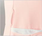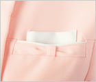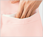顔まわりがすっきり見える襟なしタイプのワンピースに、ポケットのリボンで可愛らしさをプラス。しなやかで丈夫な綾織にストレッチ性を加えた、着心地の良さと動きやすさを追求した素材を採用しています。