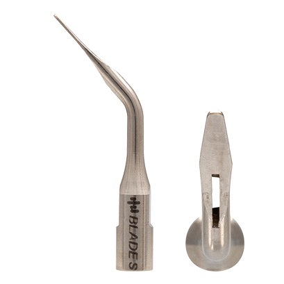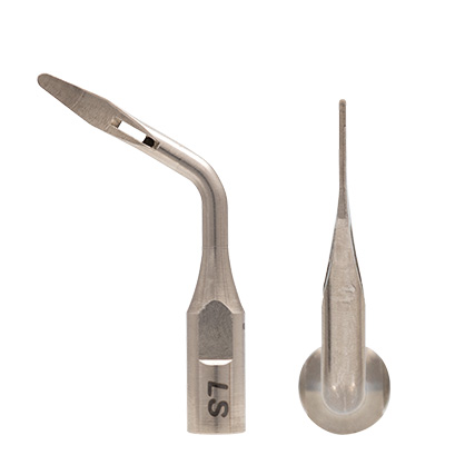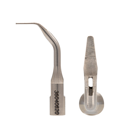 前歯部および臼歯部隣接面のバイオフィルムや歯石を除去するチップです。