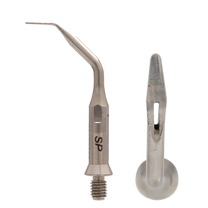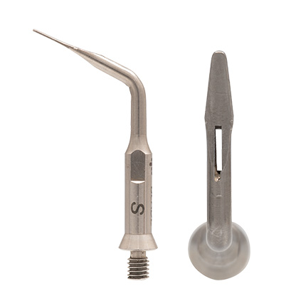 前歯部および臼歯部隣接面のバイオフィルムや歯石を除去するチップです。