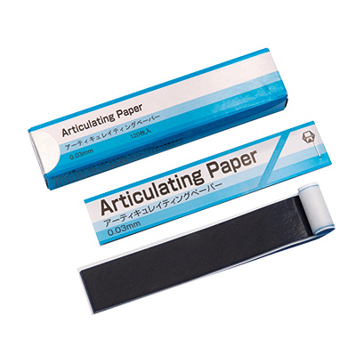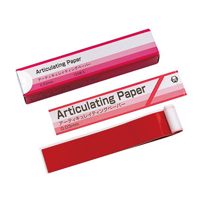 ●商品コード: 7168001●入数: 120枚(12枚綴×10)●カラー: 青●サイズ: 22×117mm●厚さ: 30ミクロン●販売名: アーティキュレーティングペーパー●薬事表示番号: 医療機器届出番号23B1X10001C06002