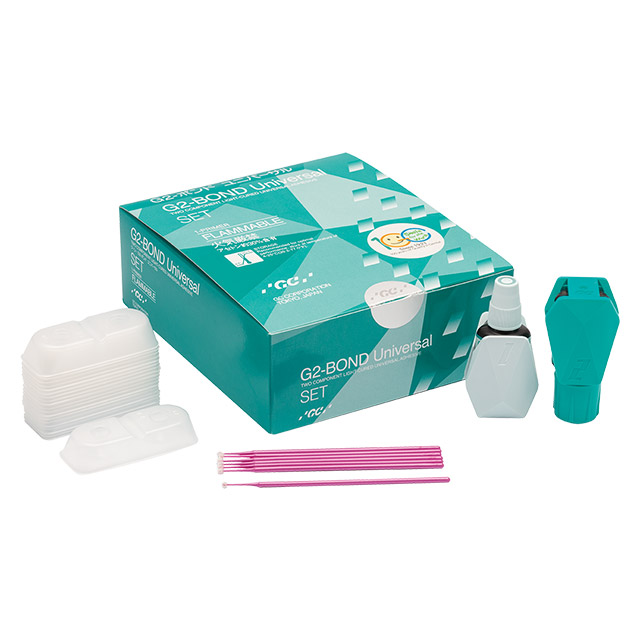 ●商品コード: 8204854●入数: 1セット●セット内容: 1-プライマー(5mL)×1、2-ボンド(5mL)×1、ボトルカバー×2、ディスポーザブルアプリケーター2 ×50、ディスポディッシュ×20 、テクニカルチャート×1●販売名: ジーシー G2-ボンド ユニバーサル●薬事表示番号: 医療機器認証番号302AKBZX00045000